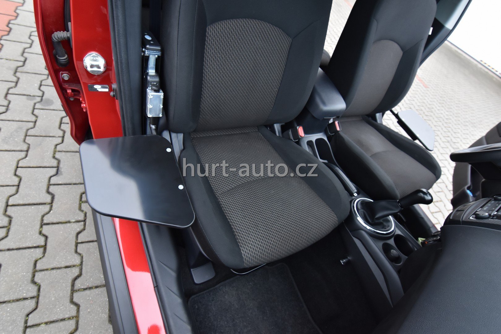 The lifting plate is used people whose car seat (e. g. MPV, SUV) is significantly higher than the wheelchair seat, or cannot move on the seat. The lifting mechanism can also be used when the user needs to get out of the seat or lift from the seat above. The lift of the plate is electrically operated and the plate can be slid out or lowered for easy handling and in the case of a driver entering the car who does not need it.