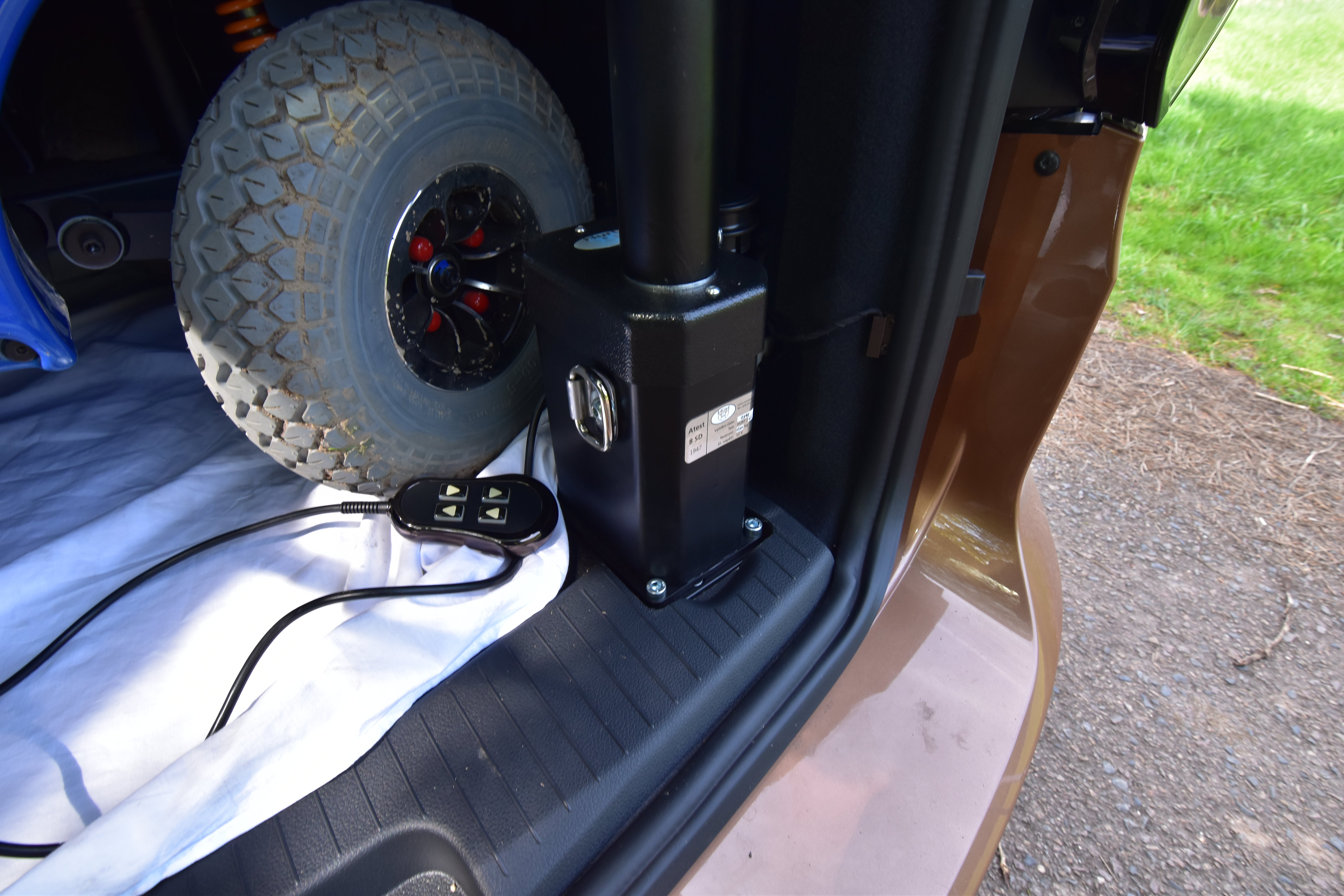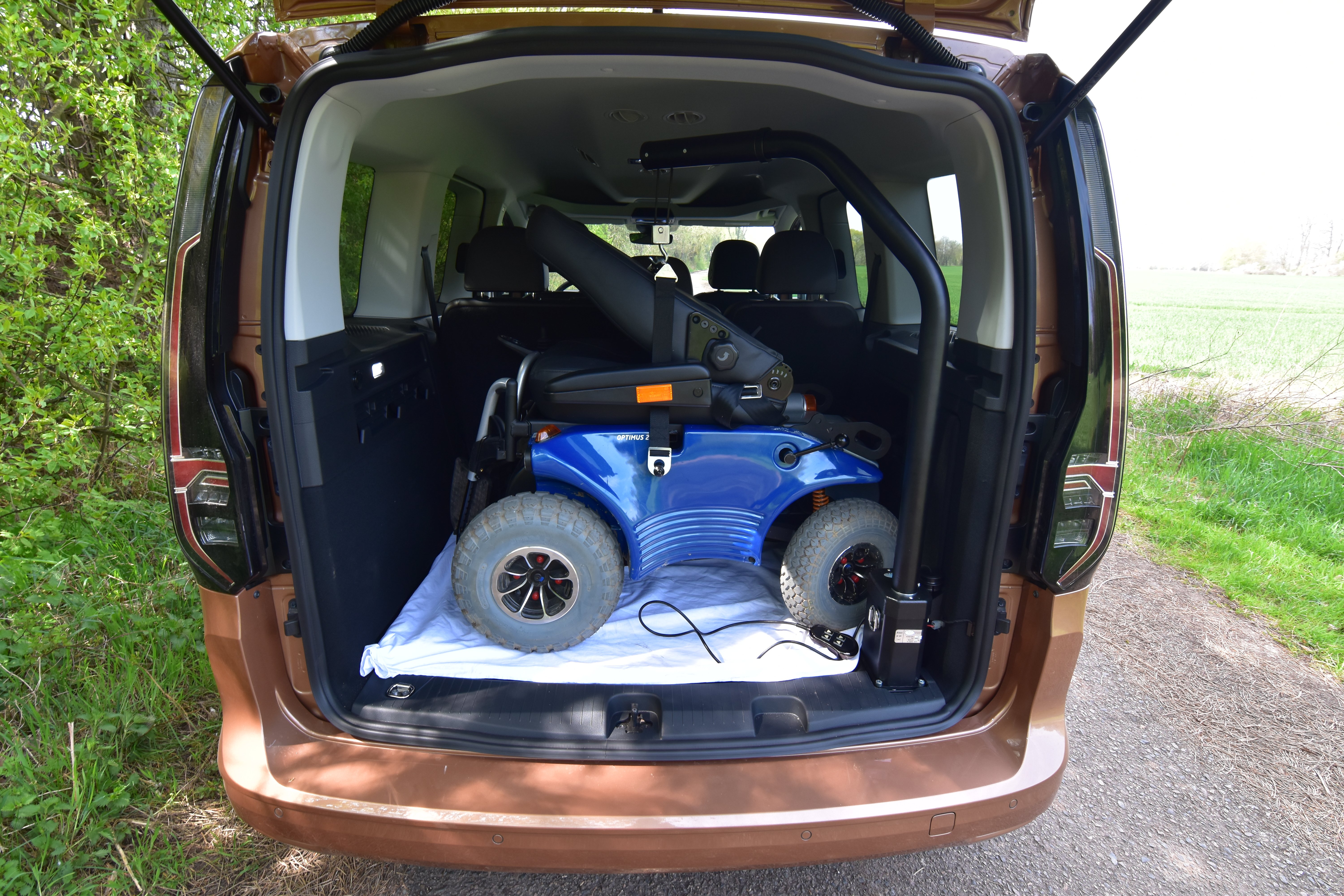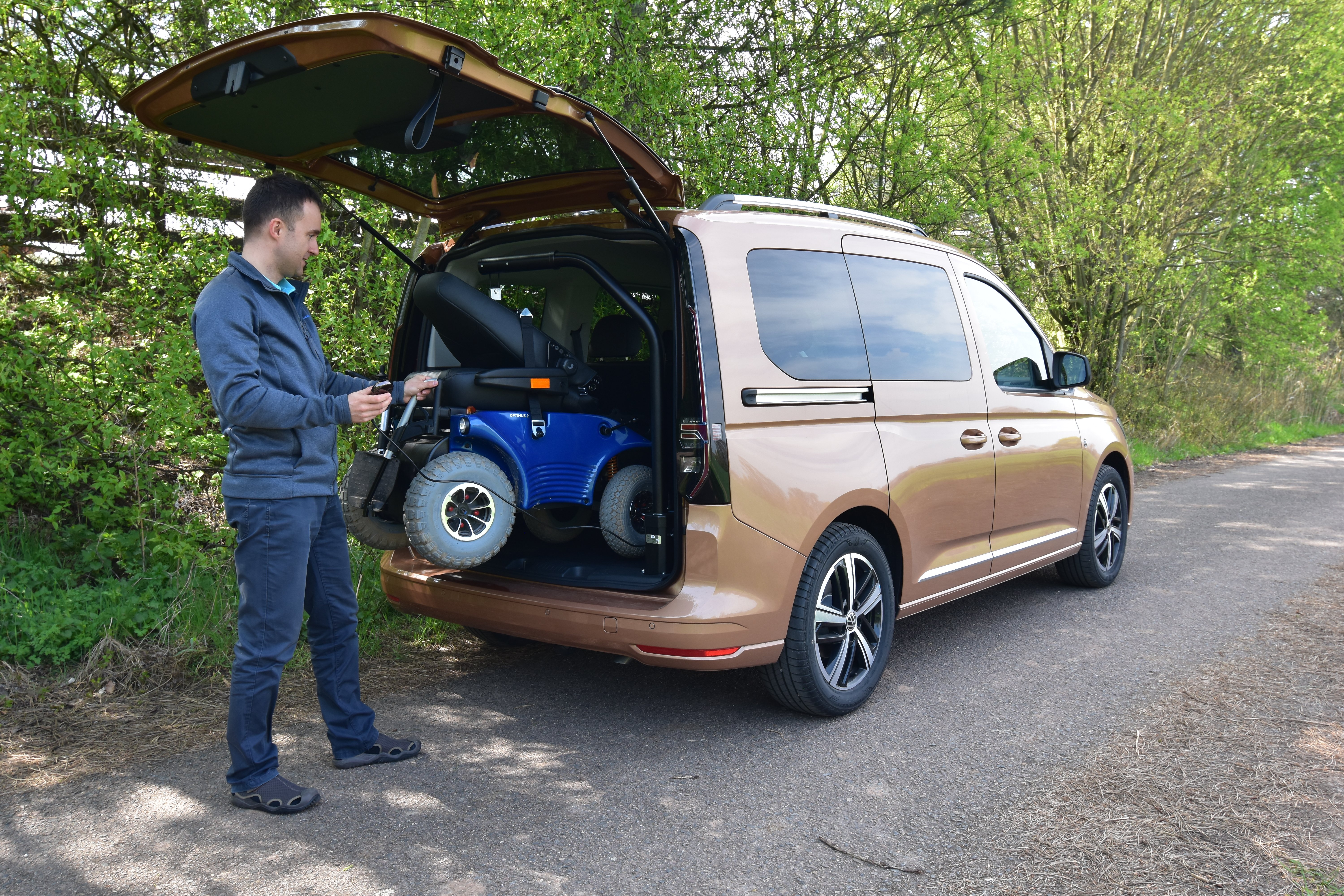 VW Caddy je vhodné auto nejen pro nakládání těžkého elektrického vozíku. Naším elektrickým jeřábkem velmi pohodlně, rychle, bez zbytečného rozkládání vozíku.