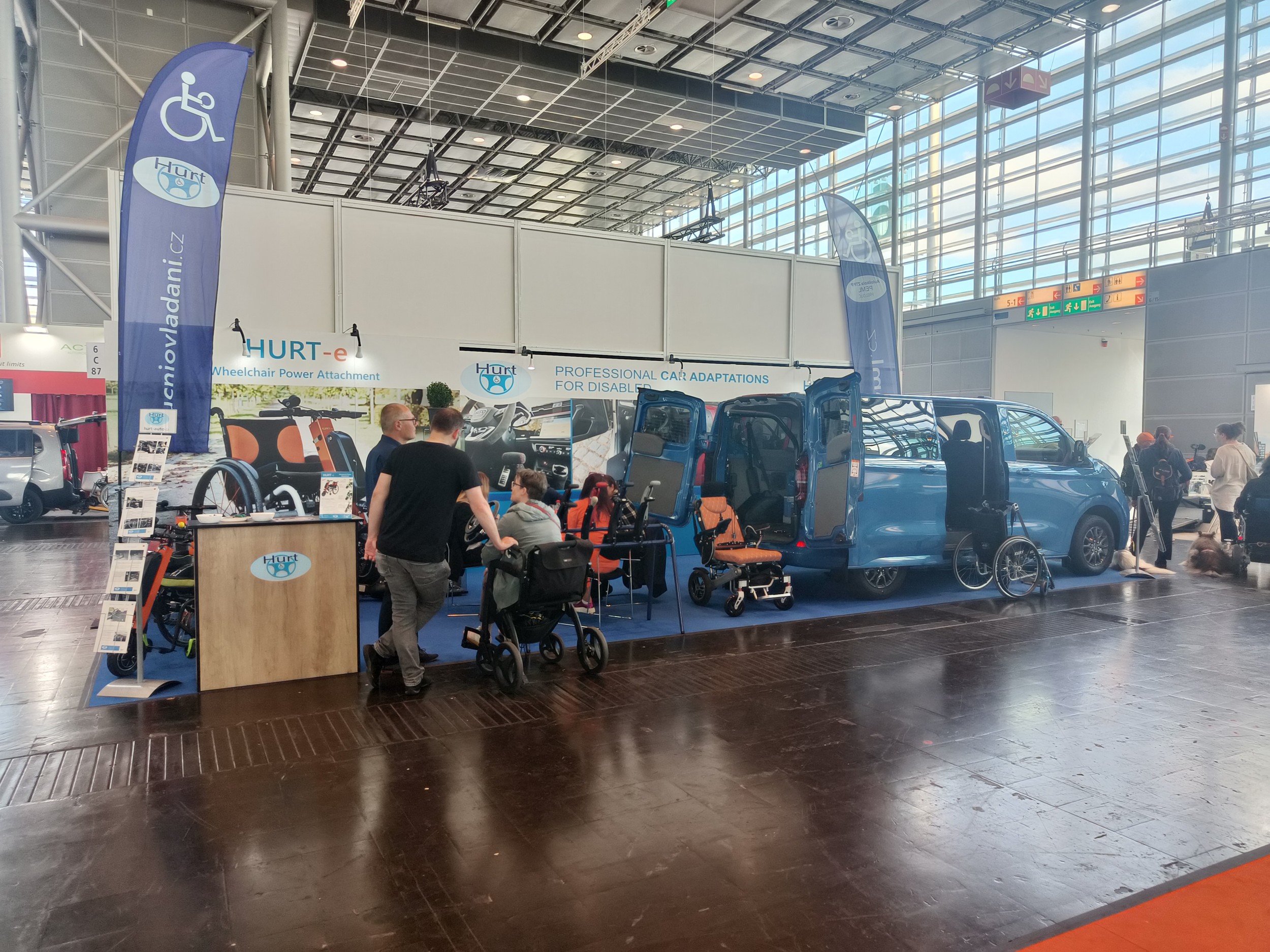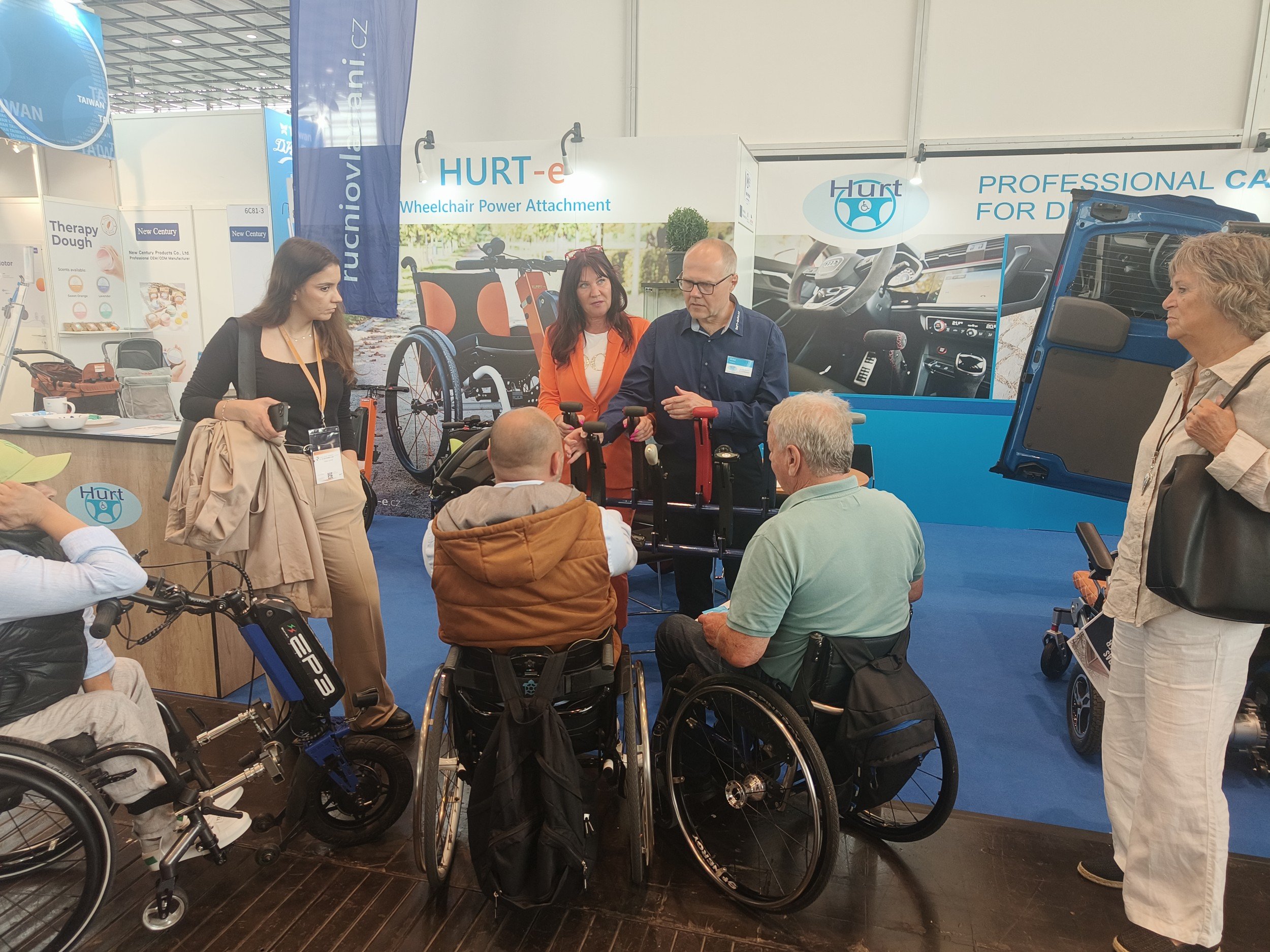 - Ukázku všech typů pohonu vozíku HURT-e, včetně představení nové varianty HURT-e Elegance, která má odnímatelnou baterii v hliníkovém pouzdru v barvě tubusu.