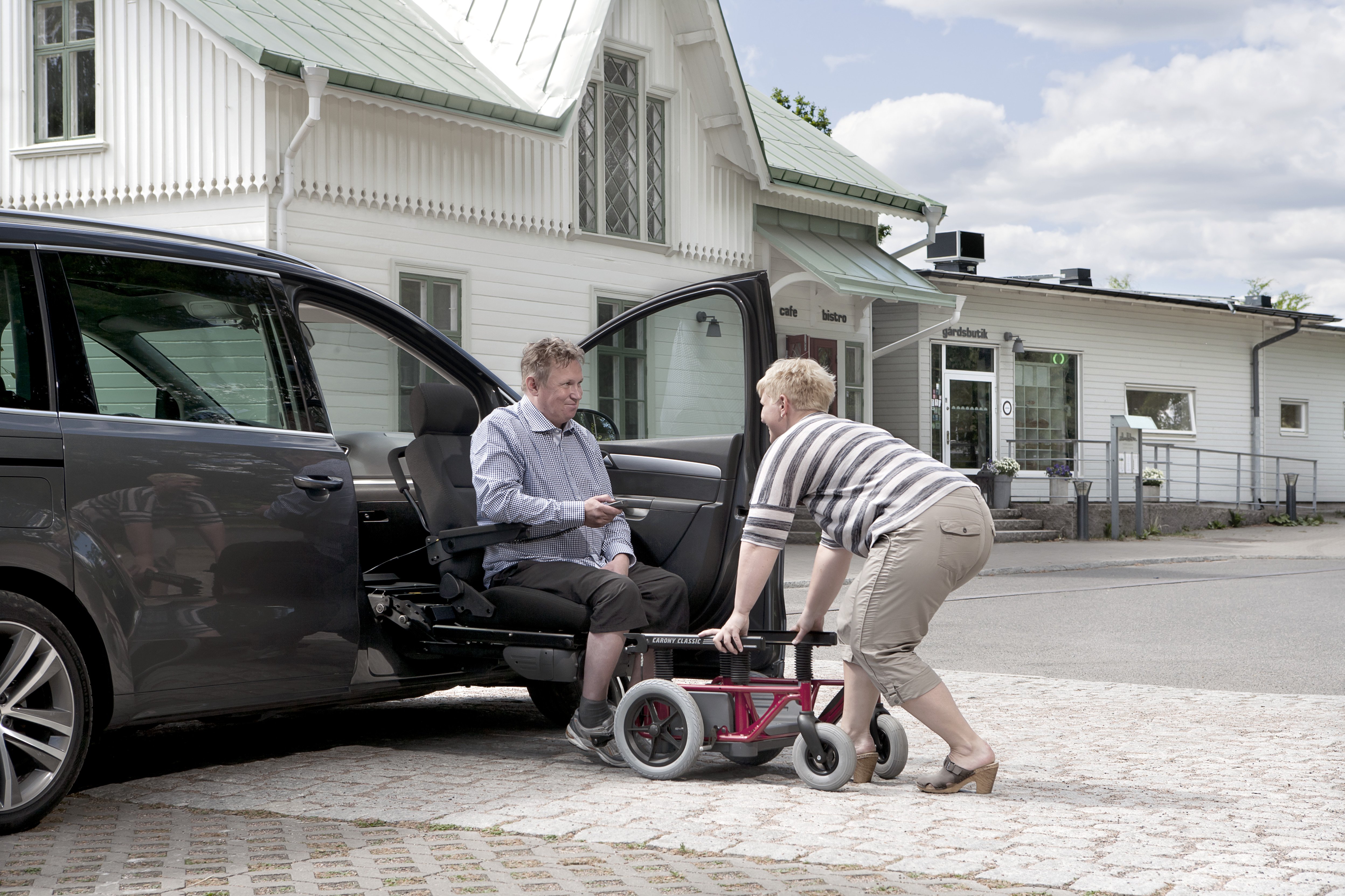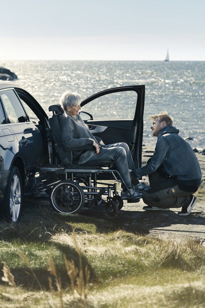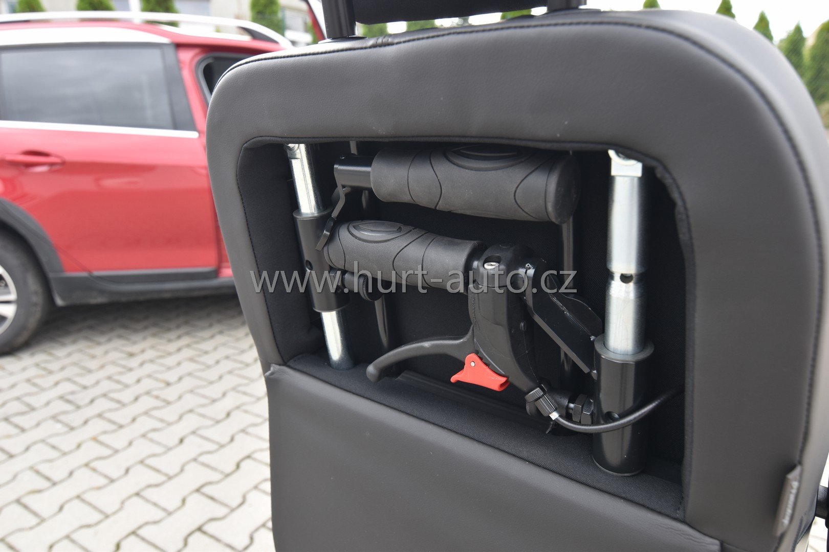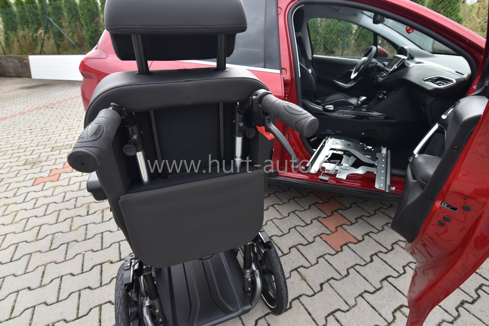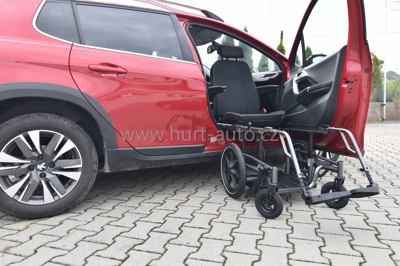| Pro vyšší vozy je vhodné využít mechanismus výsuvné sedačky, aby bylo možné překonat výšku sedačky ve voze. Sedačka vyjede ven z vozu a sníží se na úroveň, kdy je možné ji propojit s podvozkem vozíku. |