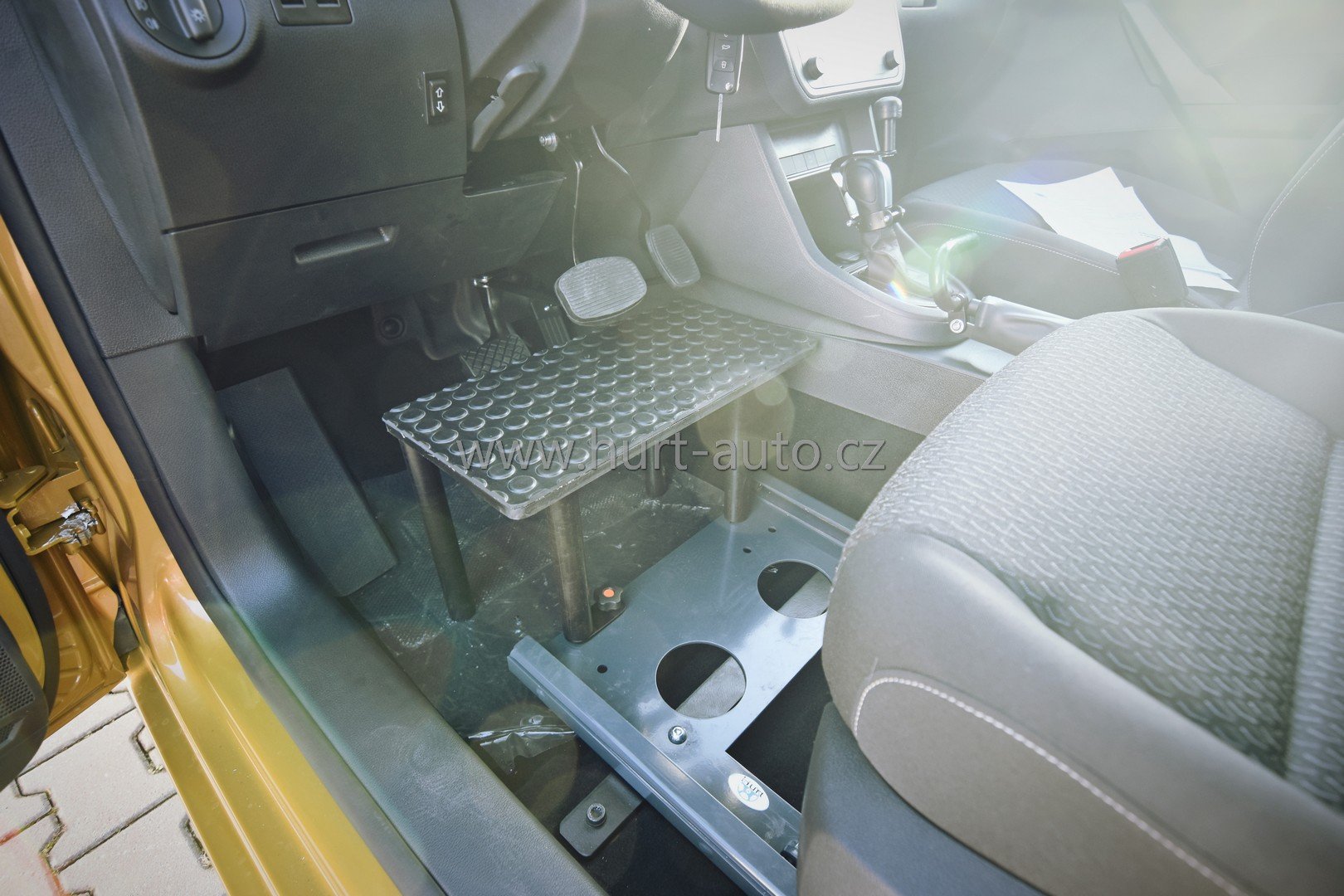 Pro osoby, které mají omezenou hybnost pravé nohy nebo její amputaci, je vhodný vůz s automatickou převodovkou, kde se ovládání plynu řeší umístěním plynového pedálu na levou stranu od pedálu brzdového, tudíž oba pedály se ovládají levou nohou. Do podlahy je připevněna malá základna, na kterou se nasazuje kompletní mechanismus levostranného pedálu, tzn. levostranný pedál a krytka původního pedálu. Celý systém lze jednoduše a rychle demontovat, tudíž vůz lze téměř okamžitě řídit běžným způsobem.